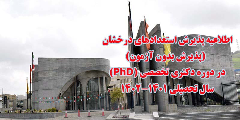 با استعانت از ایزد منان به منظور توسعه دوره های تحصیلات تکمیلی و در راستای تربیت نیروی انسانی محقق و متخصص، دانشگاه علوم کشاورزی و منابع طبیعی گرگان برای سال تحصیلی 1402-1401 بر اساس دستورالعمل اجرایی آیین نامه پذیرش بدون آزمون استعدادهای درخشان در مقطع تحصیلی دکتری از میان برگزیدگان علمی در رشته های کشاورزی و منابع طبیعی دانشجوی دکتری تخصصی می پذیرد.