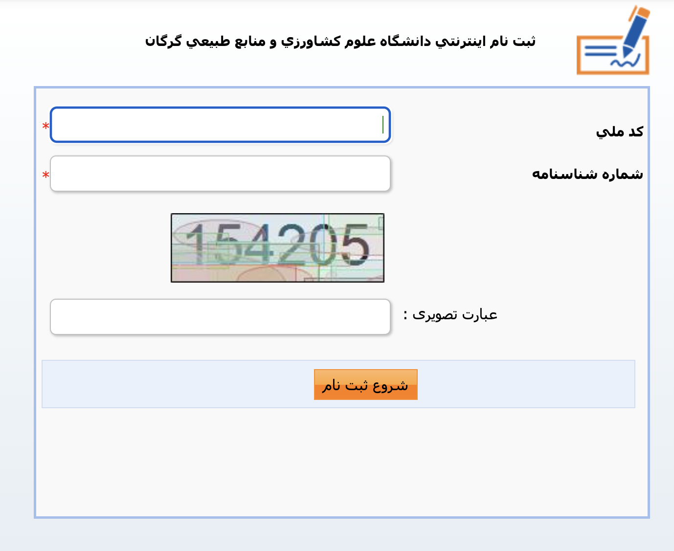 فرم درخواست ثبت نام